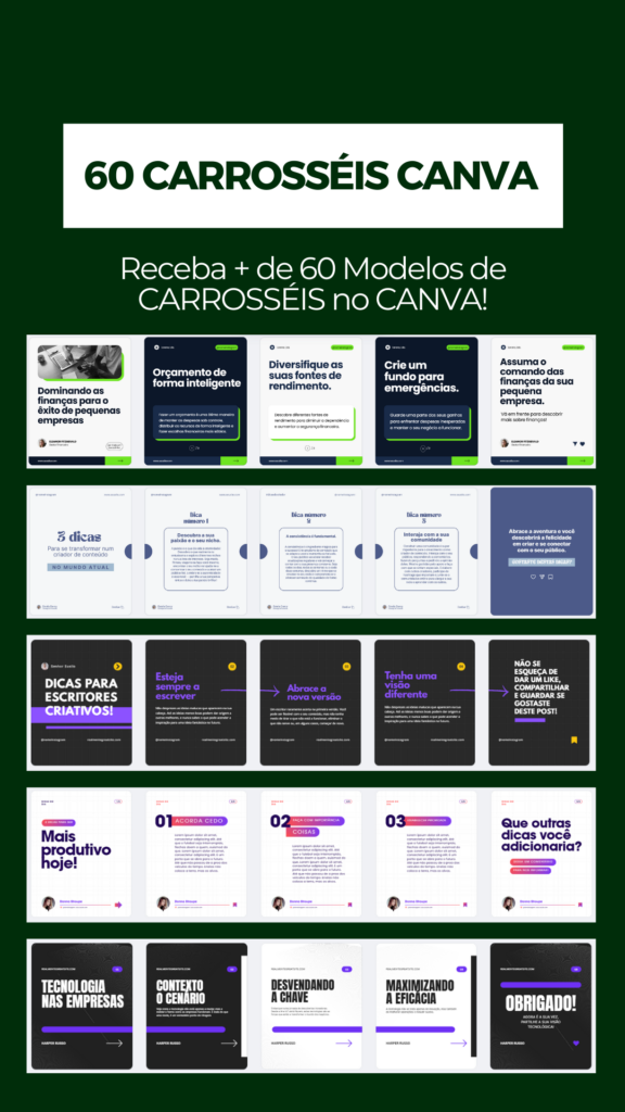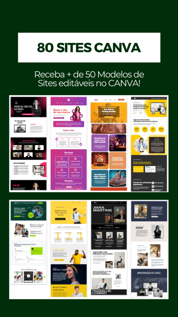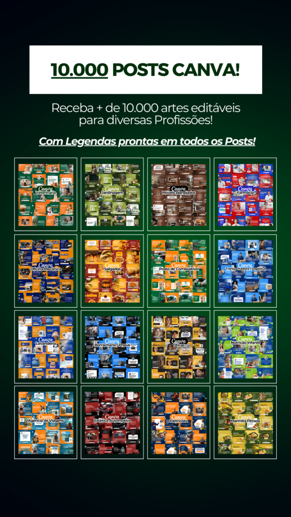Agora, tô animado pra compartilhar uma novidade com você: packs de Canva criados especialmente pra diferentes profissões e necessidades feitos por mim. O Canva é uma ferramenta poderosa, e meu objetivo é deixar o design acessível e prático pra todo mundo. Com minha experiência, desenvolvi packs que unem estética com funcionalidade, pra você ganhar tempo e ter resultados profissionais de forma simples.