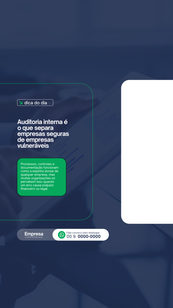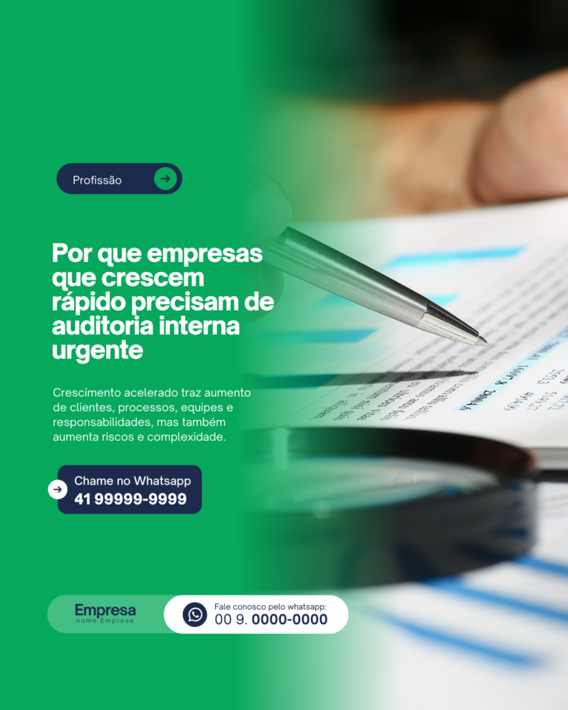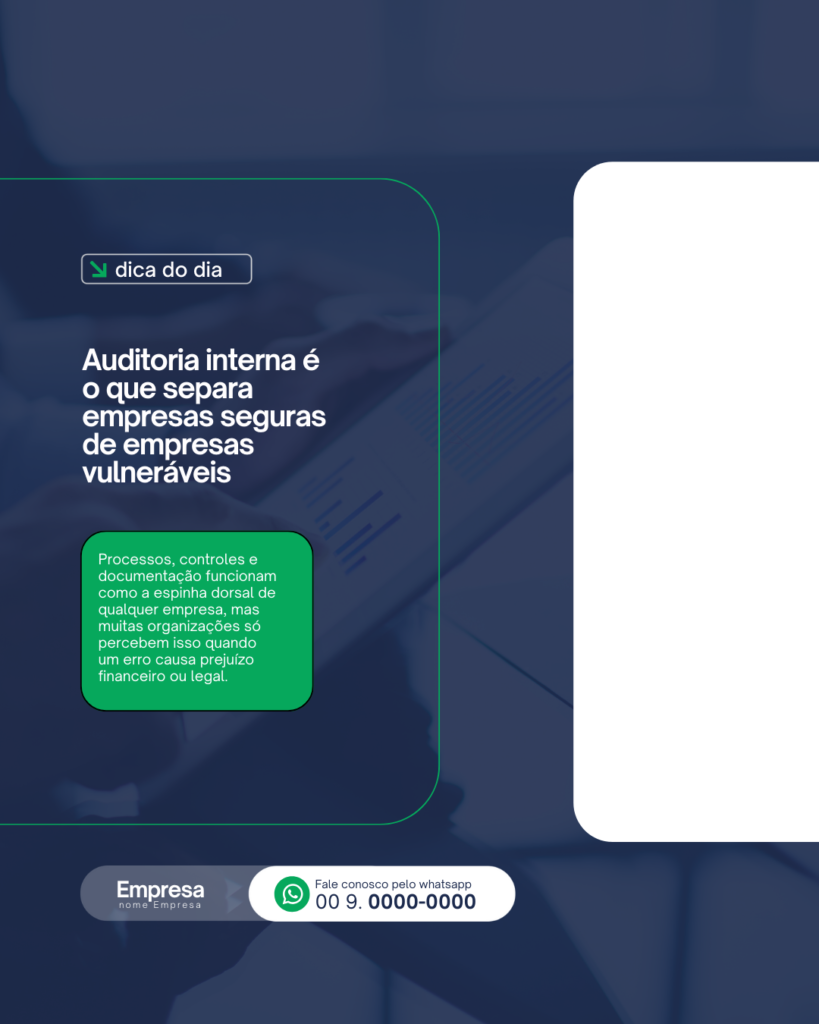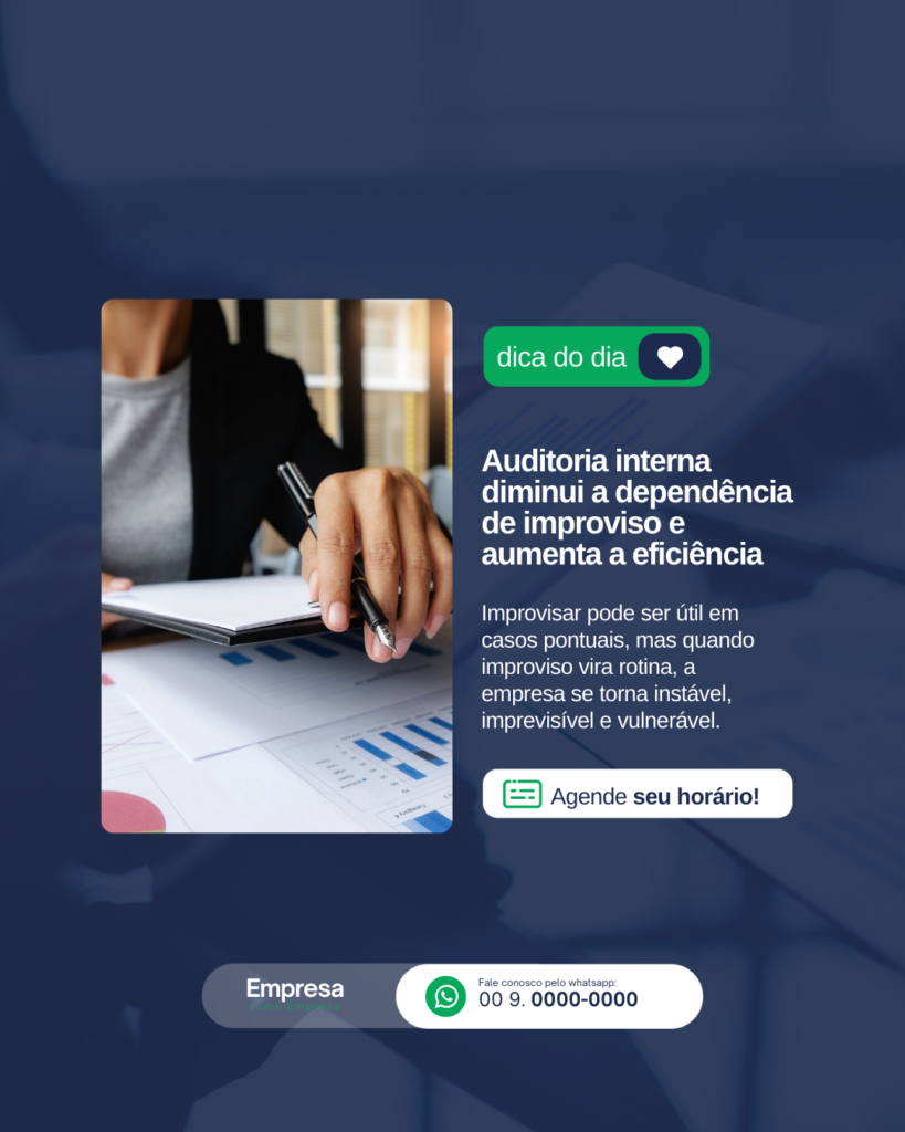 Transforme suas redes sociais em uma vitrine de vendas e tenha mais clientes todos os dias com Posts prontos para Auditoria Interna.