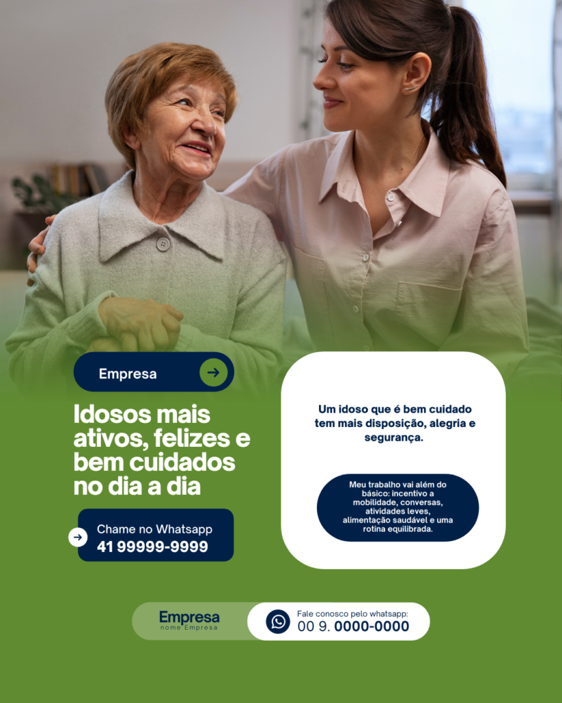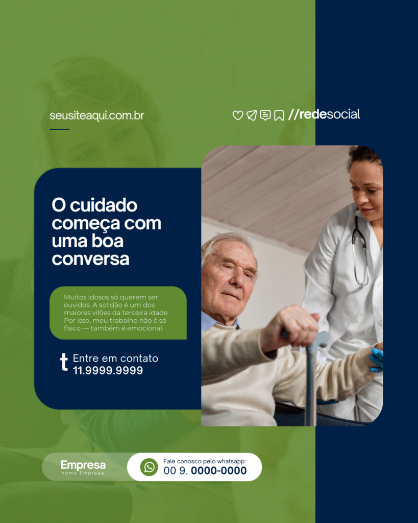 Transforme suas redes sociais em uma vitrine de vendas e tenha mais clientes todos os dias com Posts prontos para Cuidador De Idosos.