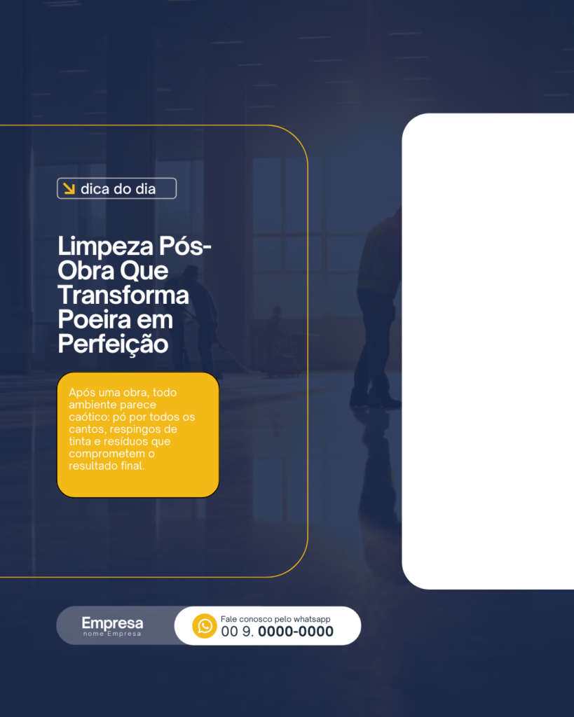 Transforme suas redes sociais em uma vitrine de vendas e tenha mais clientes todos os dias com Posts prontos para Limpeza Pós Obra.