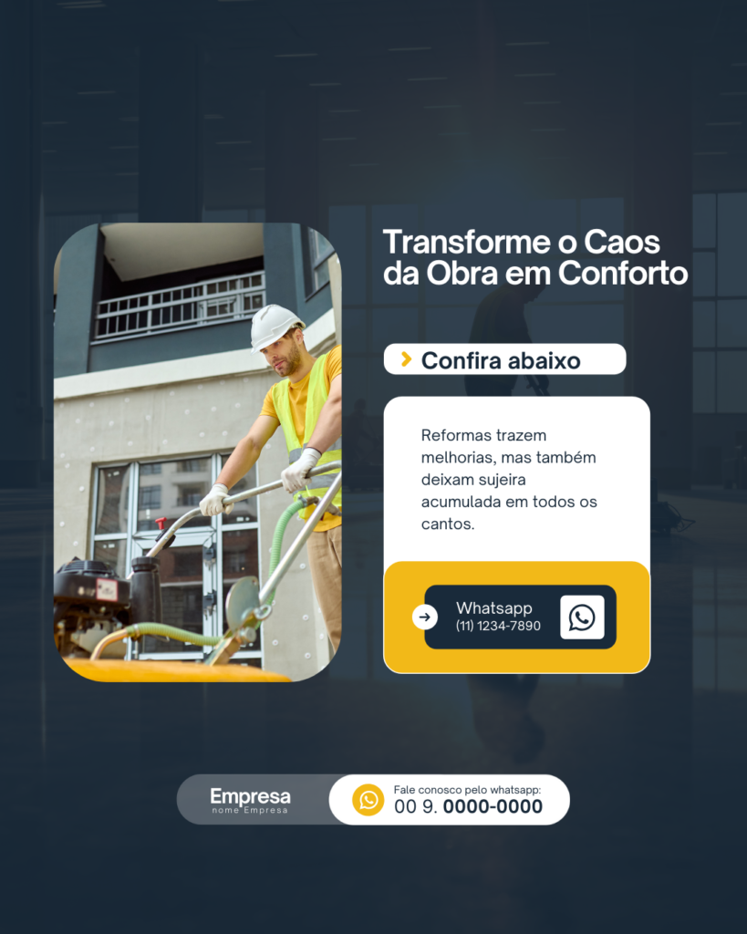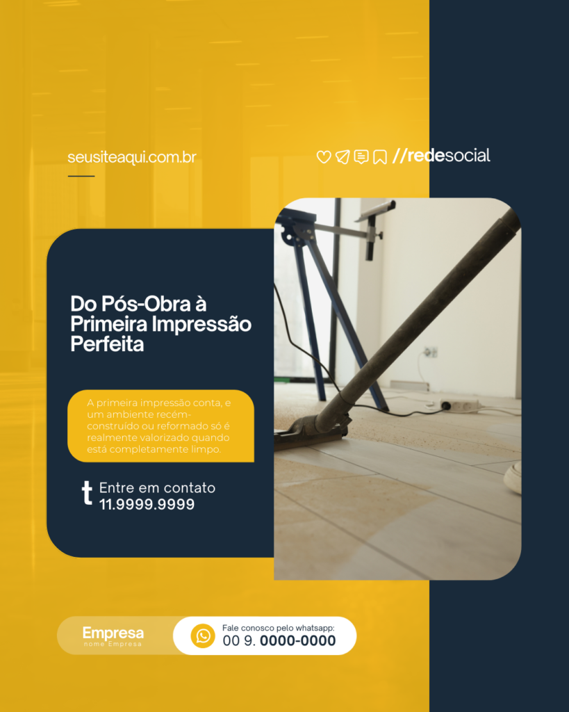Tornar a criação de conteúdo mais envolvente e sem esforço é simples com nosso pacote completo de artes prontas para Limpeza Pós Obra.