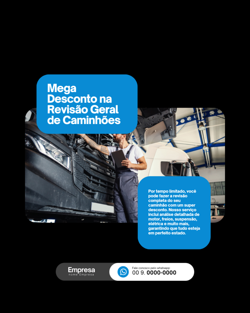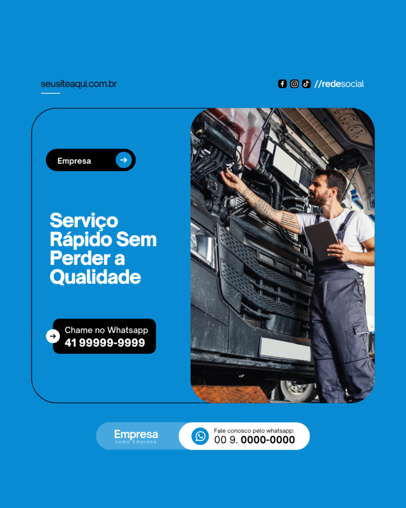 Transforme suas redes sociais em uma vitrine de vendas e tenha mais clientes todos os dias com Posts prontos para Mecânica De Caminhão.