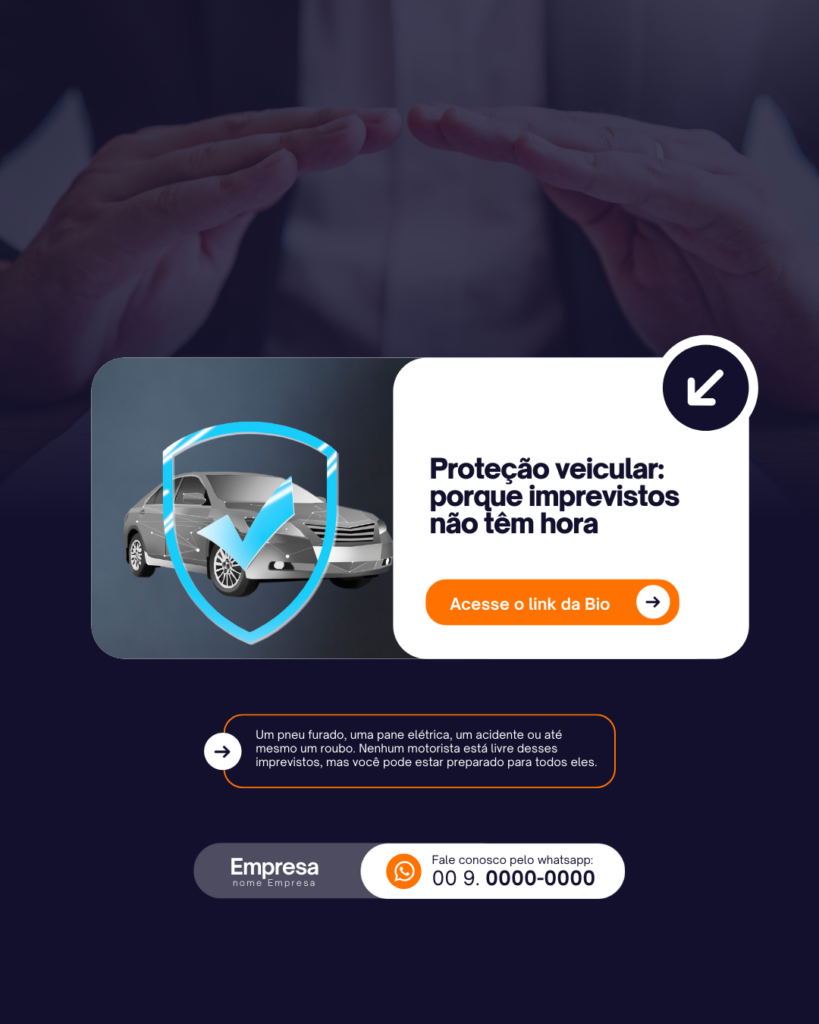 Tornar a criação de conteúdo mais envolvente e sem esforço é simples com nosso pacote completo de artes prontas para Proteção Veicular.