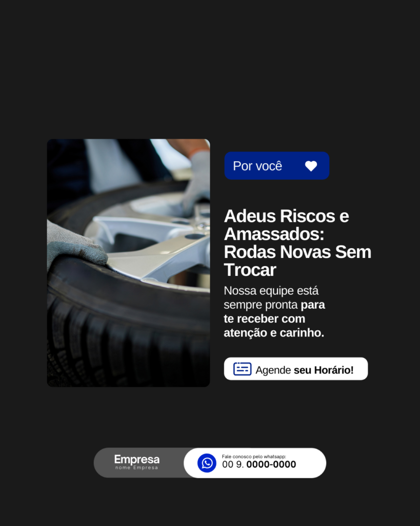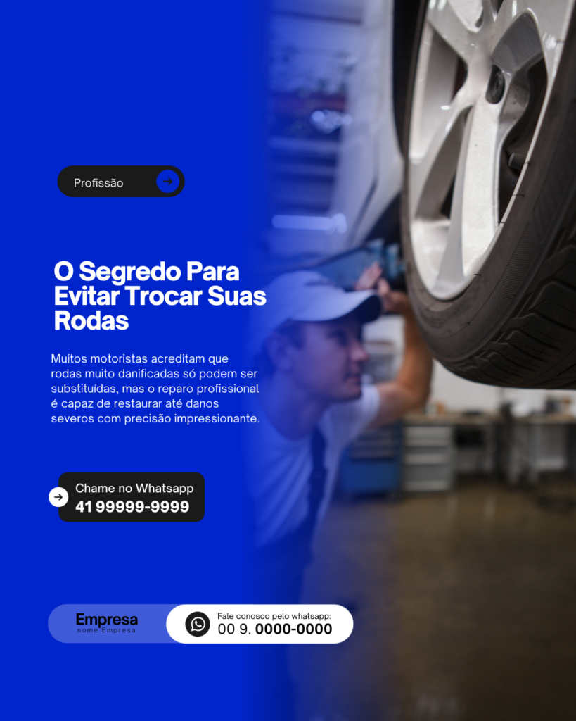Transforme suas redes sociais em uma vitrine de vendas e tenha mais clientes todos os dias com Posts prontos para Reparo De Rodas.