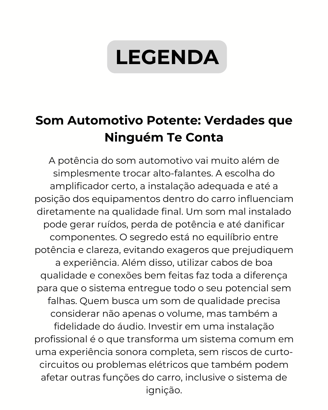 Transforme suas redes sociais em uma vitrine de vendas e tenha mais clientes todos os dias com Posts prontos para Som Automotivo.