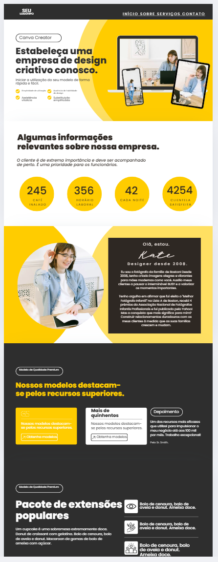 Tenha seu site moderno e funcional sem gastar com programador. São 80 modelos completos, editáveis no Canva grátis e prontos para qualquer nicho!